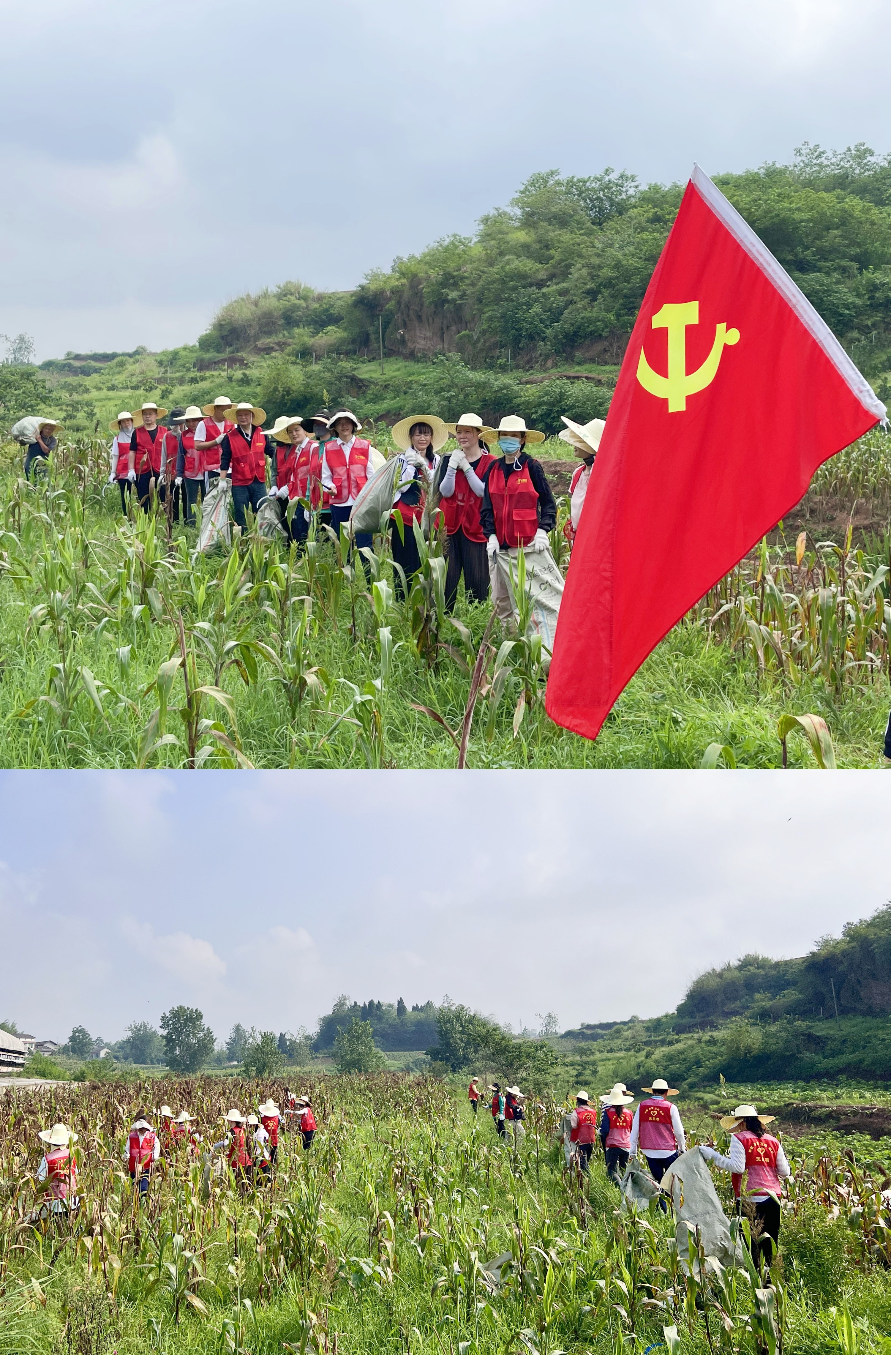 随后,党员志愿者们带上草帽、手握镰刀下到高粱地里,帮助村民们抢收高粱,与村民们一起收割、装袋、搬运、脱粒……大家相互配合、通力协作,鲜艳的党旗在田间飘扬,描绘出一幅丰收繁忙的景象。